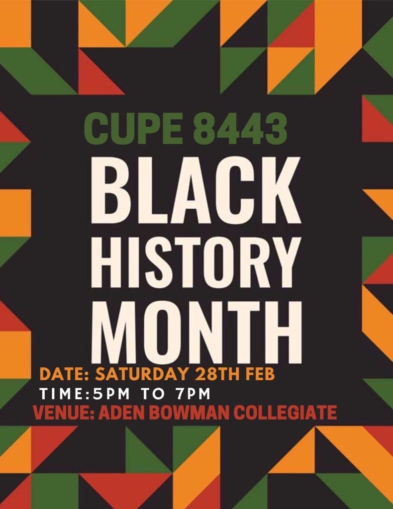 CUPE 8443’s Diversity Committee is excited to invite you to our Black History Month Potluck, celebrating this year’s theme: